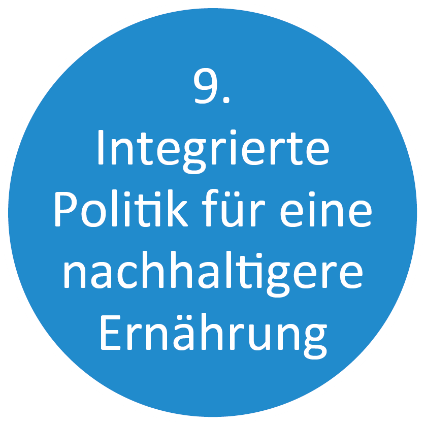 - Politikfeld „Nachhaltigere Ernährung” aufwerten und institutionell weiterentwickeln – „Eine integrierte Ernährungspolitik etablieren”