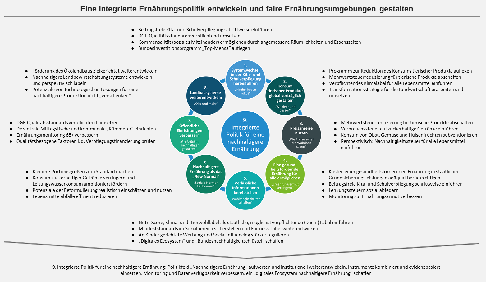 Neun zentrale Empfehlungen für eine integrierte Politik für eine nachhaltigere Ernährung